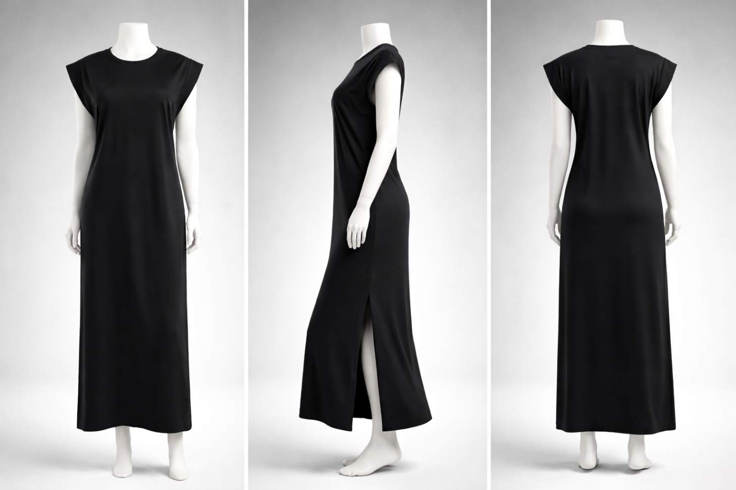 Com modelagem fluida, caimento impecável e fenda lateral estratégica, ele alonga a silhueta, valoriza o movimento e transmite elegância sem esforço.